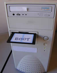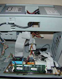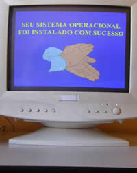 7) Conecte os cabos (teclado e rato,monitor e a fonte de alimentaçao) e feche a caixa;